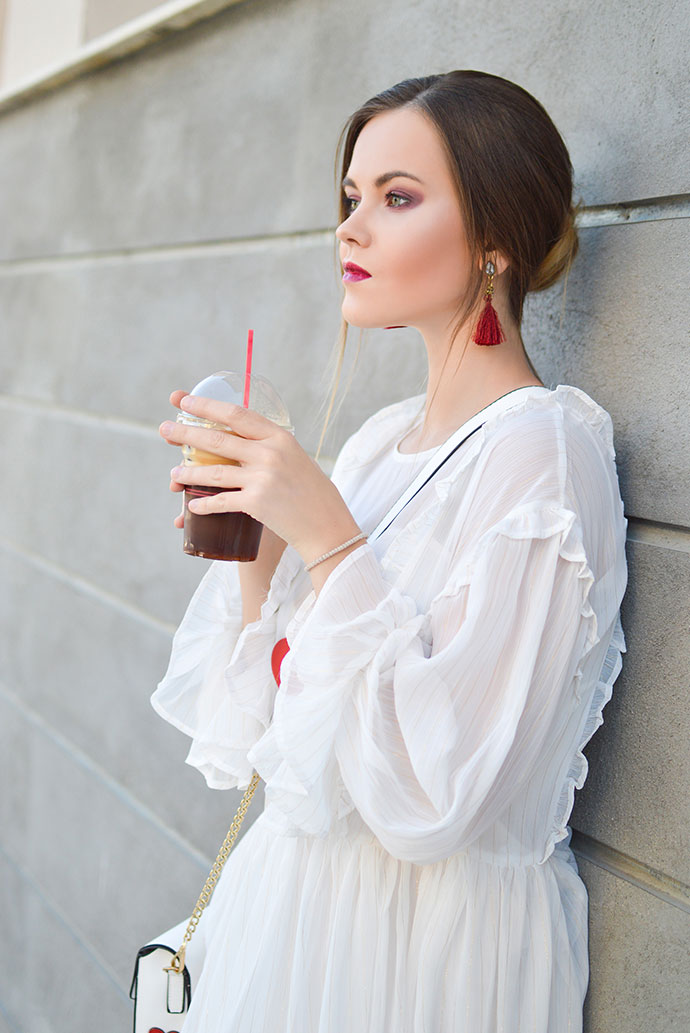 White chiffon ruffle sleeve dress