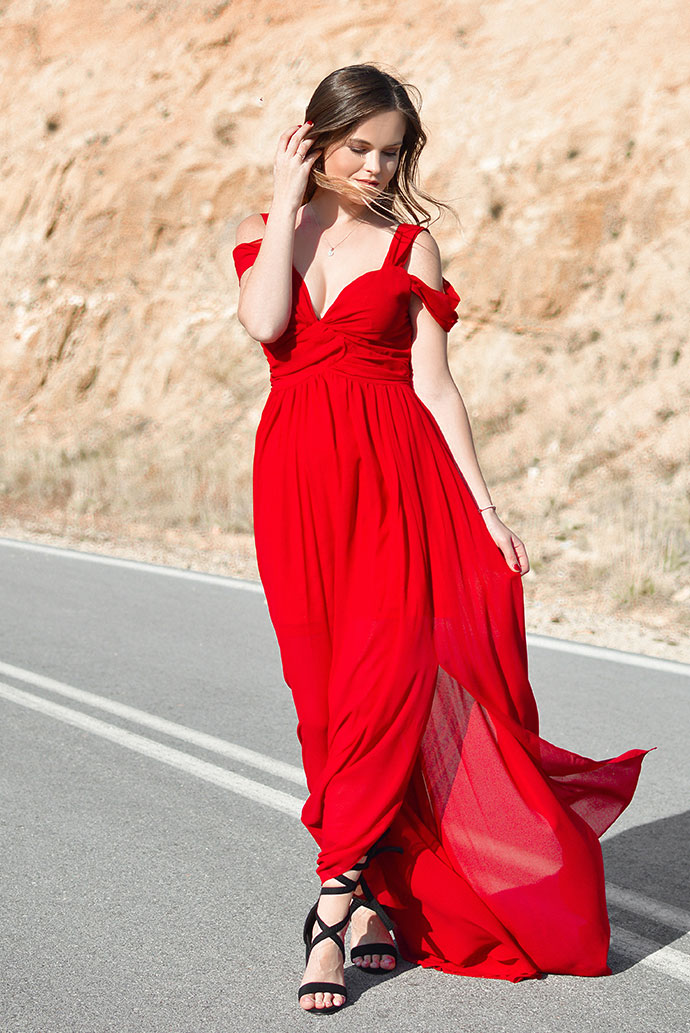 Women Elegant Red Maxi Dress