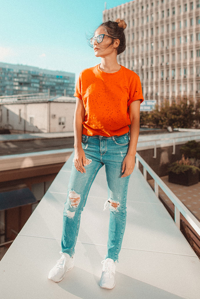 Orange T-Shirt & Denim Jeans Look